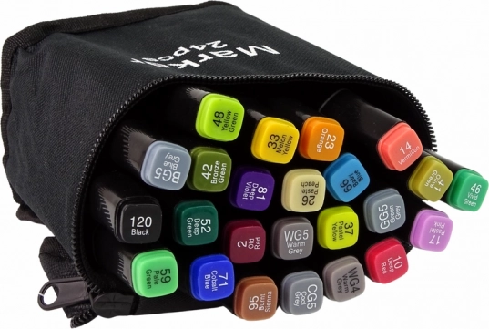 Naši flomastri vsebujejo alkoholno črnilo z visoko pigmentacijo, zahvaljujoč čemur so risbe jasne, izrazite in odporne proti bledenju.