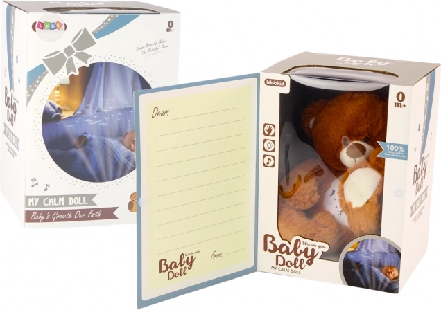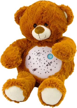 Ko pride večer, se medvedek preklopi v nočni način in postane spremljevalec za mirno uspavanje. Izdelan je iz visokokakovostnega mehkega materiala, varen za občutljivo otroško kožo.