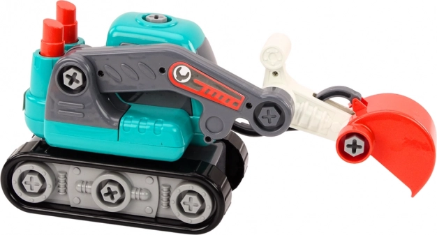 Ta risani goseničarski bager v turkizni barvi bo navdušil vsakega otroka, ki ima rad gradbišča in tehniko. Zaradi vijakov in priloženega orodja lahko otroci vozilo sami razstavijo in ponovno sestavijo, s čimer razvijajo potrpežljivost, logično razmišljanje in spretnost.