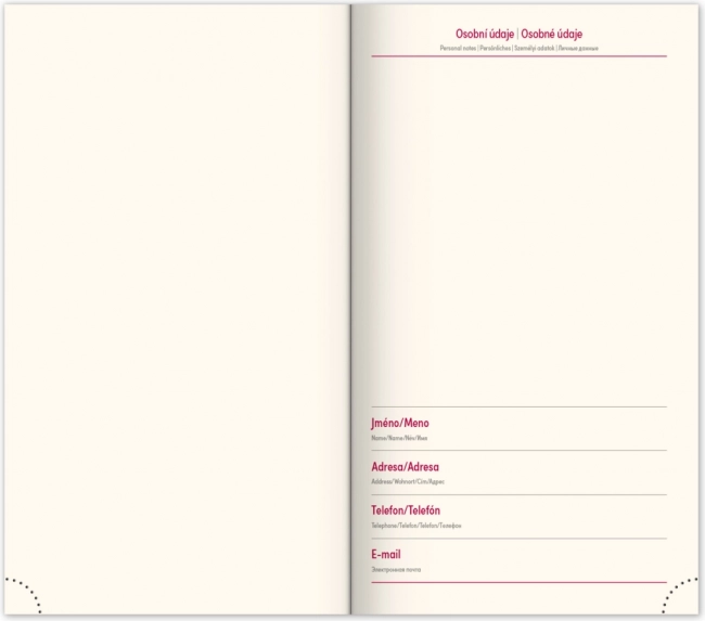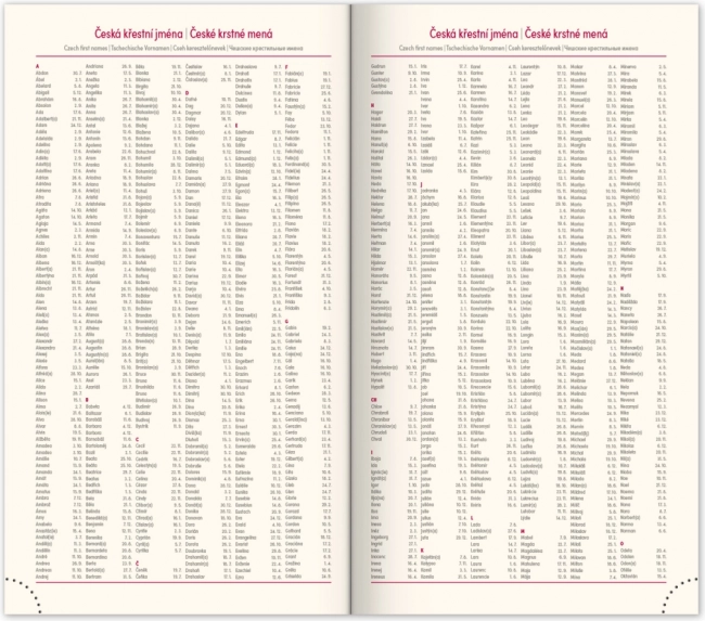 - Razširjen seznam čeških imen, zemljevid Češke in Slovaške republike ter prostor za osebne podatke.