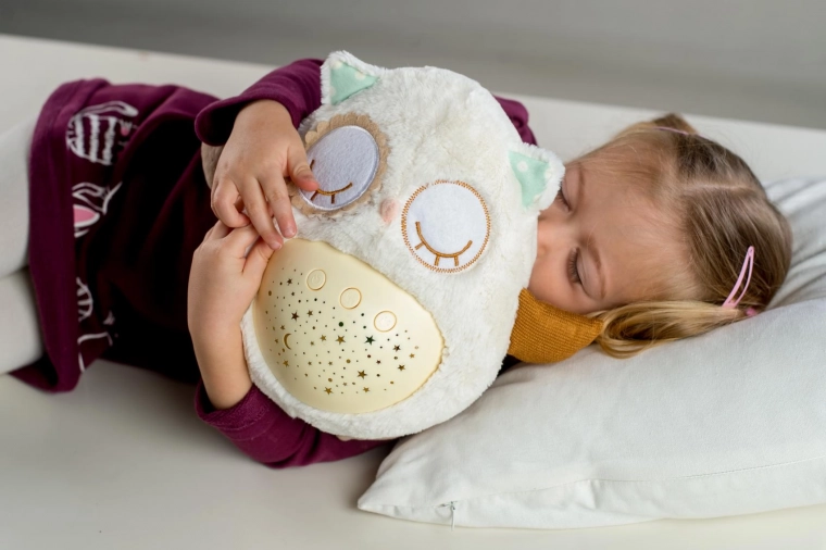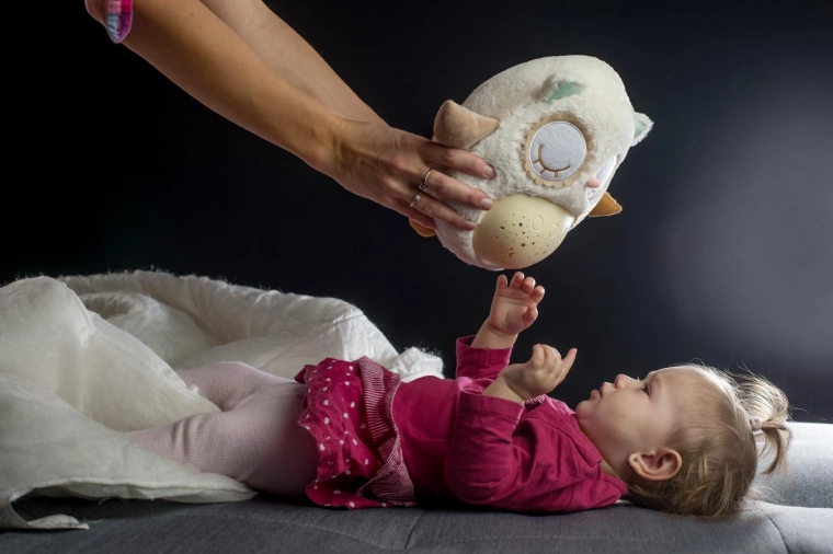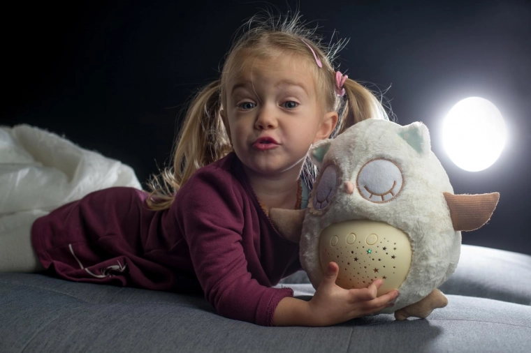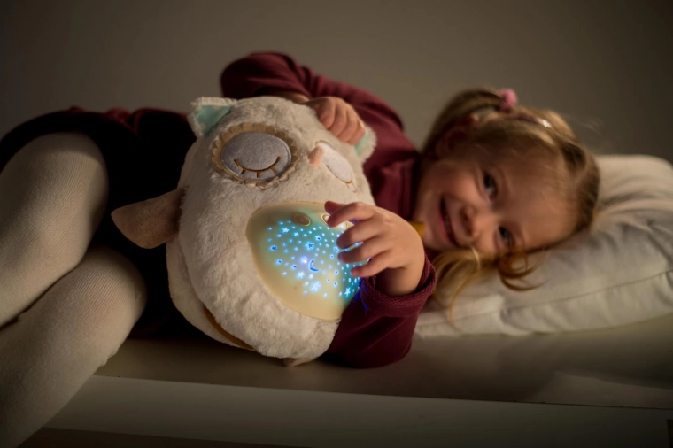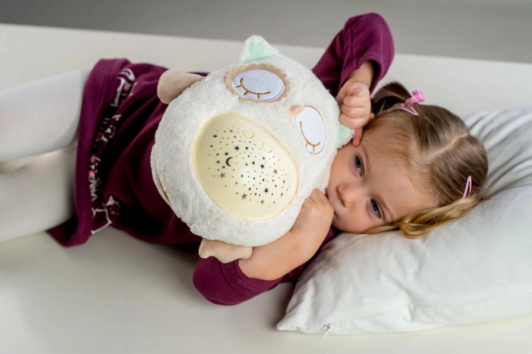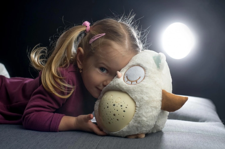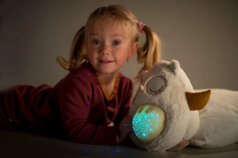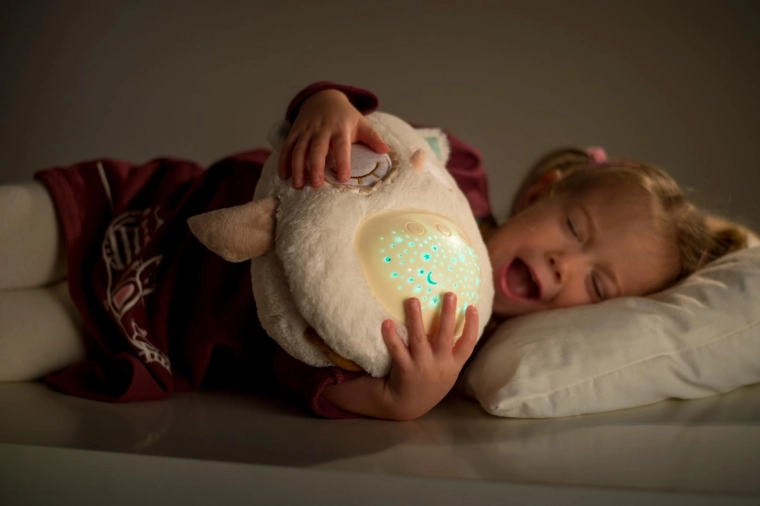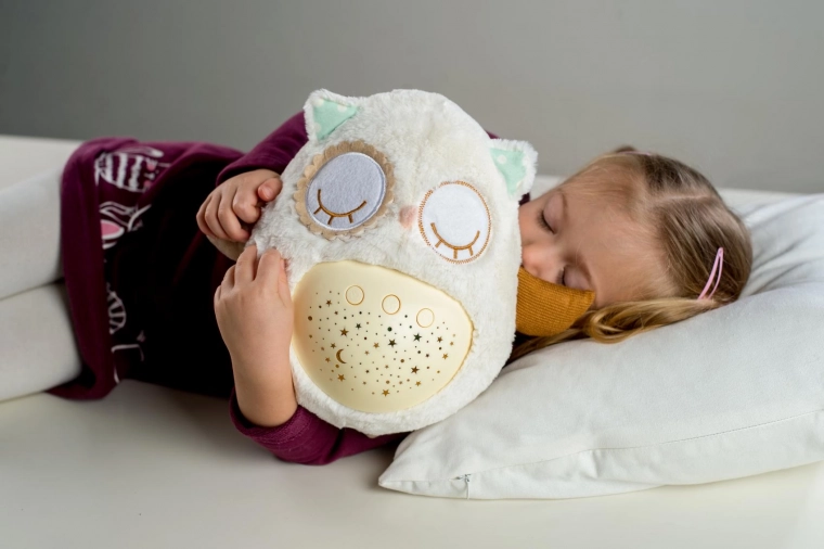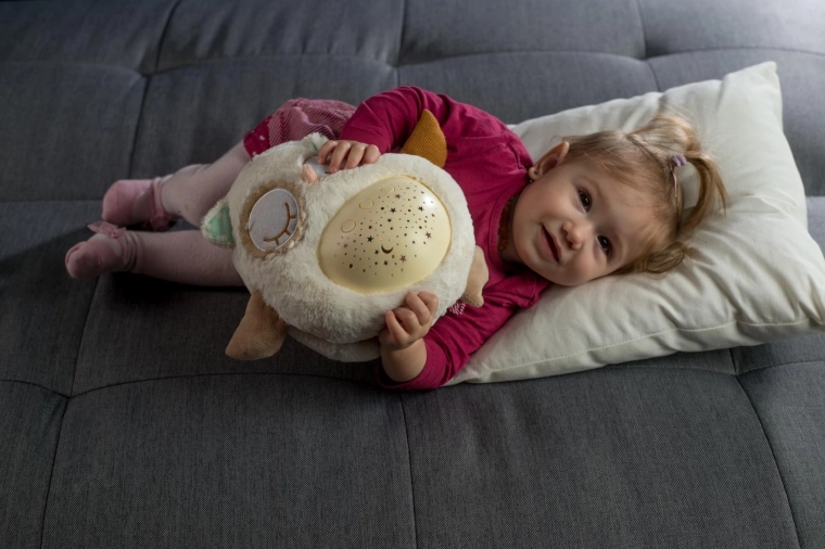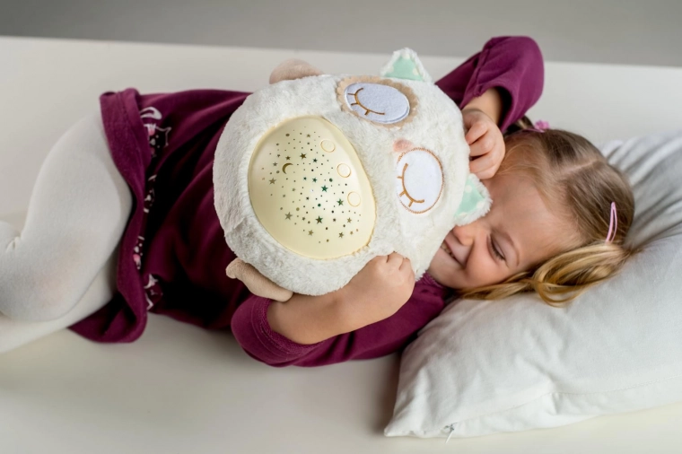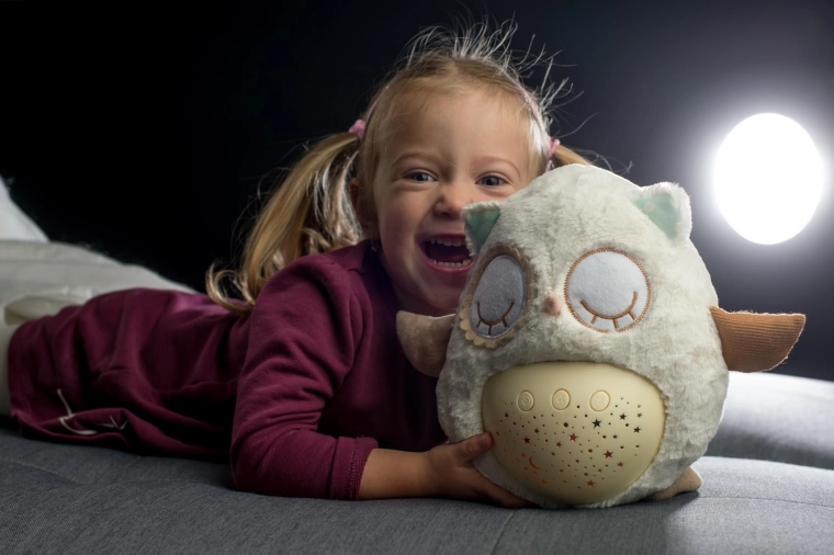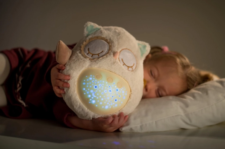 Ta mehka plišasta uspavanka združuje toplo crkljanje s pametnimi funkcijami za lažje uspavanje. Sovica projicira zvezdnato nebo v 8 barvah, predvaja 8 uspavank in pomirjujoče prenatalne zvoke, na katere so najmlajši vajeni iz maminega trebuščka. Po koncu melodije še približno minuto nežno sveti, nato se samodejno izklopi.