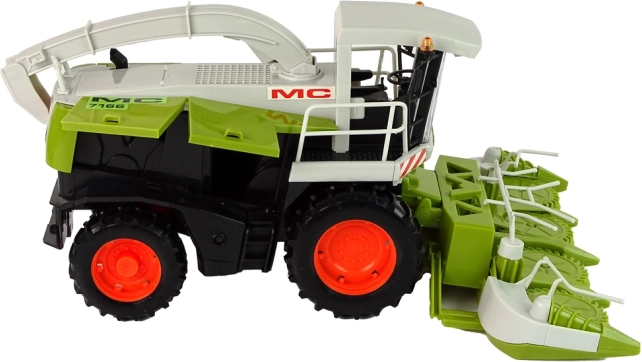 Velik zeleni kombajn ponuja realističen videz s premičnimi deli, kot so volan ali žetvena naprava, ki simulirajo resnično delo na polju. Odpirani elementi omogočajo pretvarjanje popravil in servis vozila, medtem ko prostorna notranjost omogoča shranjevanje malenkosti ali igrač.