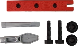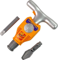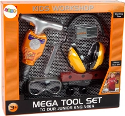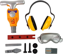 Celoten komplet je zapakiran v škatlo s prozornim okencem, ki pritegne otrokovo pozornost. Komplet vsebuje vijake, ki jih je mogoče priviti s kladivom in ustreznim nastavkom. Dodatna prednost tega kompleta je, da kladivo po vstavitvi baterij in uporabi oranžnega gumba, vidnega na ročaju, začne delovati na svoj značilen način. Otrok ima poleg tega možnost nadeti si slušalke in zaščitna očala, kar mu zagotovi še več zabave in tudi varnosti pri uporabi kladiva. Vsi deli so izdelani iz plastike in so varni za otroke.