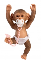 To realistično reborn opičje dojenče bo navdušilo otroke in zbiratelje s svojo natančno izdelavo. Celovinilno telo z nežno teksturo in lepo oblikovanimi gubami deluje naravno ter omogoča varno kopanje (priporočamo, da se trepalnic ne moči). Zahvaljujoč sklepom na rokah in nogah je opička odlično nastavljiva – zna sedeti in jo je mogoče obesiti za roke ali noge.