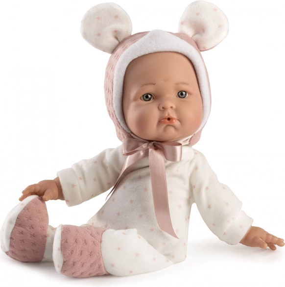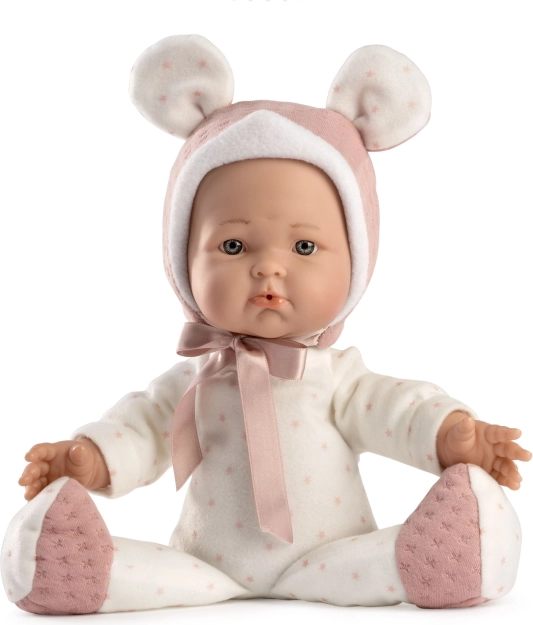 Glava in ude punčke so izdelani iz kakovostnega mehkega vinila, ki zagotavlja trpežnost in realistične podrobnosti.