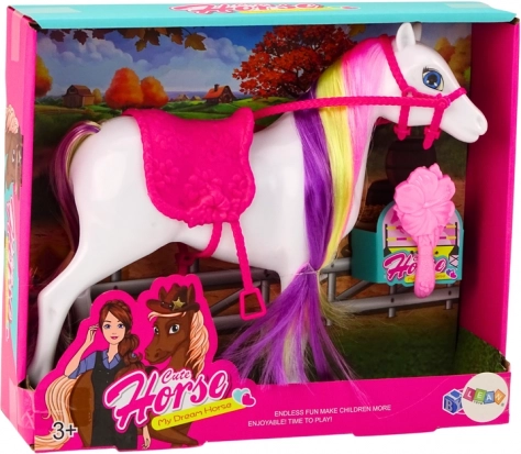 Odkrijte čar jahalnega sveta z figurico belega konja, ki navduši s podrobnim oblikovanjem in dodatki. Otroci lahko ustvarjajo ustvarjalne pričeske s priloženo krtačo ter obogatijo igro z nastavljivim rožnatim sedlom in uzdo. Igrača je odlična za razvoj fine motorike, domišljije in skrbstvenih veščin.