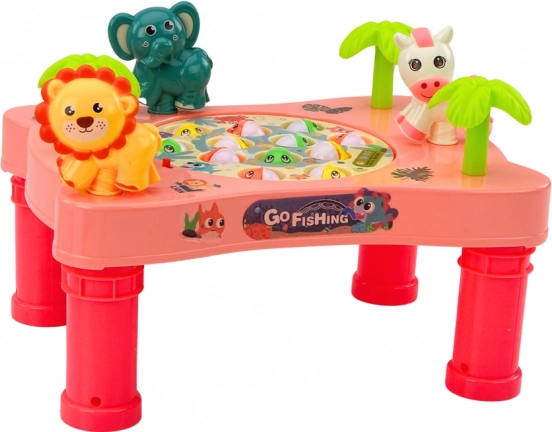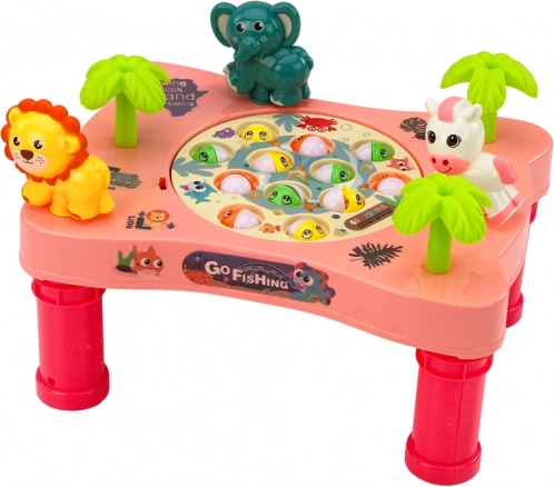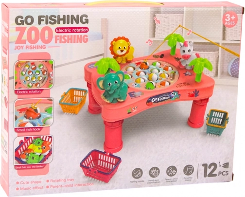 Rožnata igralna mizica s temo »Go Fishing« spremeni otroško sobo v majhen akvarij. Vrteči krožnik z odpiralnimi usteci ribic ustvarja dinamičen izziv, ki otroke motivira k natančnemu merjenju in hitrim reakcijam. Zaradi živih barv, veselih živalic in melodij bo igra navdušila male in velike.