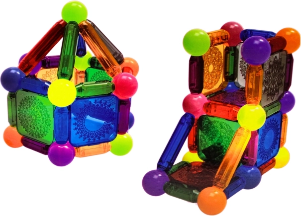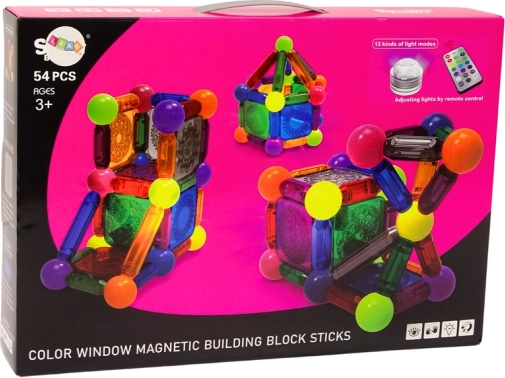 Odkrijte ustvarjalni svet z magnetno sestavljanko s 54 kosi, ki se zahvaljujoč močnim magnetom zlahka spaja in ustvarja stabilne konstrukcije. Del kompleta je LED lučka z daljinskim upravljalnikom in spreminjanjem barv, ki gradnjam doda nov razsežnostni učinek ter razvija domišljijo, prostorsko zaznavanje in fino motoriko.
