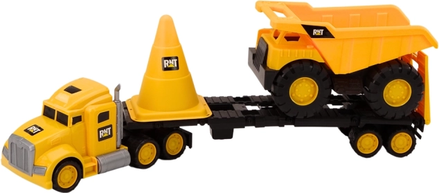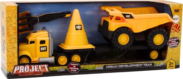 Ta realistični gradbeni set bo razveselil vsakega otroka, ki ljubi svetove gradbišč. Rumeni vlačilec s prikolico zlahka prevaža prekucnik, velik prometni stožec označi gradbišče, lopatka in grabljice pa poskrbijo za ure zabave v pesku in na vrtu. Igrače so izdelane iz kakovostne, vzdržljive plastike, ki se zlahka čisti.