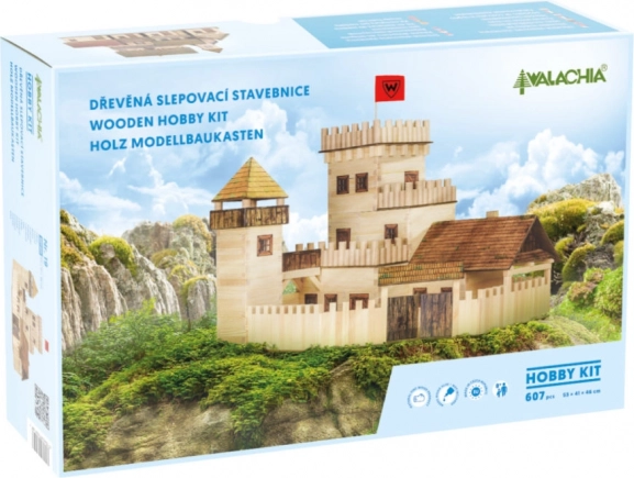 Sestavite si svojo srednjeveško zgodbo z leseno sestavljanko WALACHIA – Grad v merilu 1:32. Set vsebuje 607 delov iz kakovostnega lesa s papirnatimi dodatki (okna, vrata, strehe) in podrobnimi navodili. Končni model meri približno 53 × 41 × 46 cm in ponuja zahtevnost 4/5 za odlično modelarsko izkušnjo.