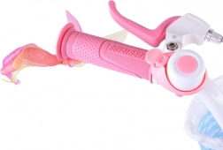 Poln ščitnik verige ščiti oblačila in majhne prste, medtem ko sprednje in zadnje bobnaste zavore zagotavljajo zanesljivo zaviranje. Uporabna košarica, zvonec in trakovi na krmilu dodajajo igriv slog. Priložena je tudi vodilna palica za starše, ki olajša prve izlete.