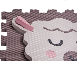 Penaste puzzle z motivom jagnjeta v temno rjavi barvi so idealne za otroške igralnice, sobice in dnevne prostore. Teksturirana površina zagotavlja zanesljiv korak, duši udarce in ščiti pred mrazom s tal. Deli z izrezanimi zaskočniki se natančno prilegajo in omogočajo hitro sestavo večje igralne površine.