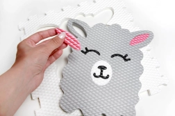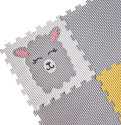 Ta penevna sestavljanka preproga v beli barvi s prijaznim motivom lame nežno popestri vsak otroški kotiček. Posamezni deli se zlahka povežejo, zato v trenutku ustvarite varno in mehko igralno površino, ki ščiti pred mrazom in manjšimi padci.
