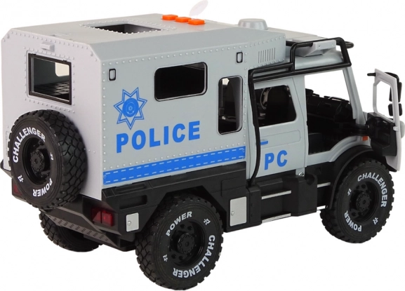 Z odpirajočimi se sprednjimi vrati lahko otroci raziskujejo notranjost vozila in ustvarjajo lastne scenarije. Zvočni in svetlobni učinki poskrbijo za dodatno vznemirjenje! LED luči na sprednjem delu vozila se prižgejo ob pritisku na enega od treh gumbov na strehi, zvoki alarma pa dodajo realističen pridih.