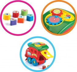 Barvita vstavljanka v obliki lokomotive je namenjena najmlajšim. S tem kosom bo malček zagotovo užival v obilici zabave! Posamezne oblike s slikicami je mogoče vstavljati v ustrezne odprtine. Vstavljanka razvija otrokove motorične, vidne in slušne sposobnosti.