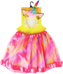 Čaroben unicorov kostum za otroke, ki vključuje prekrasno mavrično tutu krilo in čudovit naglavni obroč z unicorovim rogom ter barvnimi vrtnicami. Ta izviren komplet je zasnovan tako, da spodbuja ustvarjalno igro in domišljijo. S tem kostumom se lahko vaši mali sanjači popeljejo v svet magije in dogodivščin!