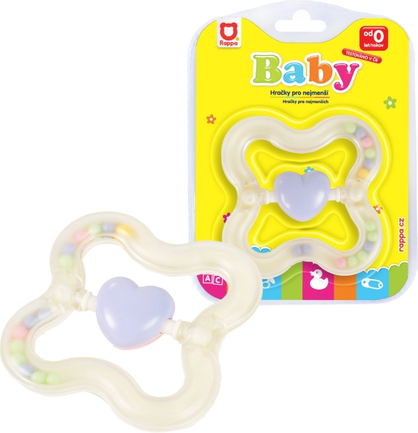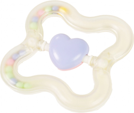 Otroška srčkasta ropotuljica v pastelnih barvah je idealna za najmlajše. Pomaga razvijati motorične spretnosti in hkrati nudi ure zabave.