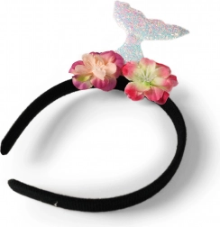 Podarite svojemu kostumu morske vile čaroben lesk. Ta moder naglavni trak krasi bleščeči ribji rep in elegantne rože, ki ustvarijo očarljiv učinek na vsaki zabavi ali karnevalu.