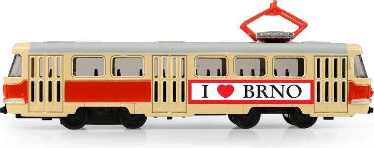 Ta podrobno izdelan kovinski retro tramvaj v rdeče-bež izvedbi je popoln spominek iz BRNA in izvirno darilo za zbiratelje. V merilu 1:87 zvesto posnema mestni električni tramvaj z izrazitim napisom I ♥ BRNO ter funkcionalnim vzvratnim pogonom za zabavno vožnjo.