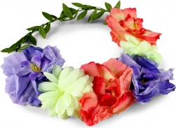 Naglavni venec s cvetjem je idealen dodatek za vaš stil. S pisanimi cvetovi in zelenimi listi je to čudovita okrasitev za lase na zabavah ali karnevalu.