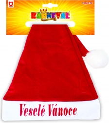 Uživajte v božičnem vzdušju z našo rdečo božično kapo z belim robom in cofom, okrašeno z napisom Vesele Božič.