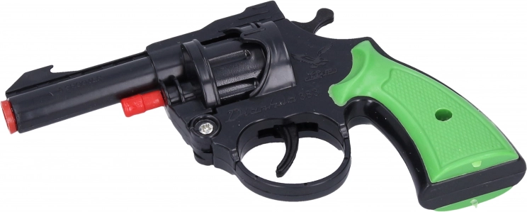 Otroški revolver na kapsule s 8 streli, na voljo v treh barvah. Idealna igrača za male kavboje od 3. leta dalje.