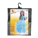 Očarljiv dekliški kostum za male princese v modri barvi z belim tilom in bleščečimi bleščicami na životcu. Odličen za pust, zabave in pravljično igro. Obleka v velikosti M za starost 6–8 let (116–128 cm) navduši z nežnim videzom in udobnim krojem. Zahvaljujoč lahkim materialom se odlično nosi in poudari pravljičen videz, bleščeč učinek in udobje pri nošenju.