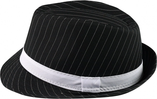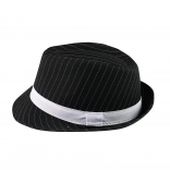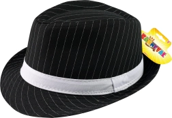 Odlično dopolni retro, swing ali gangster slog, a se izkaže tudi kot izrazit party dodatek. Višina krone 12 cm drži obliko in pristaja večini oblik obraza.