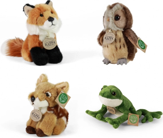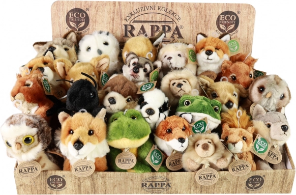 Stilski prodajni displej RAPPA ECO‑FRIENDLY ponuja pestro kolekcijo realistično oblikovanih gozdnih živalic. Vsak plišk je napolnjen z vlaknom iz recikliranih PET, zato je mehak, puhast in prijazen do narave. Odličen kot darilo za otroke ali kot privlačno impulzno blago pri blagajni.
