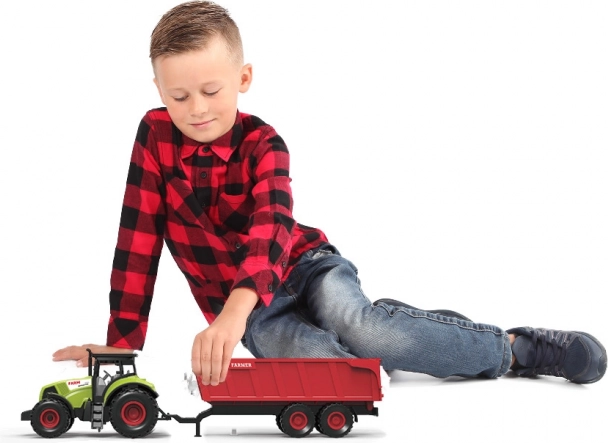 Ta podrobno izdelan plastični traktor s svetlobo in zvokom otrokom prinaša realističen vtis kmečkih opravil. Zahvaljujoč vztrajniku se zlahka zažene, odstranljiva rdeča prikolica pa razširja možnosti igre doma in na prostem.