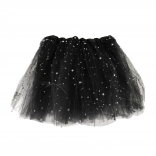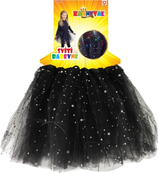Očarajte malo navihanko z čudovitim tutu krilom v črni barvi z vgrajenimi lučkami! Puhast til, satenast elastičen pas in bleščeči bleščice poskrbijo, da bo zasijala ob vsaki priložnosti. LED lučke po vklopu svetijo, baterije pa so priložene v paketu.