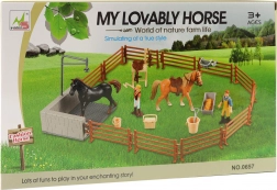 Komplet Pralni kot za konje MOJ PRIKUPNI KONJ je idealen za otroke, ki obožujejo konje in si želijo zgraditi lastno farmo. Vsebuje ograjo, pralni kot in figurice za neskončno igrivost.