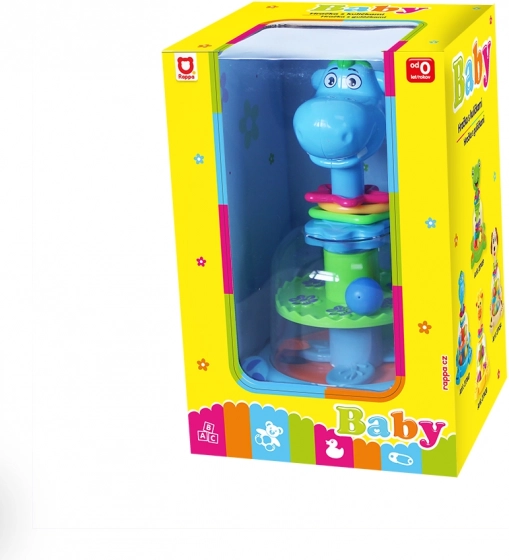 Pisana igrača v obliki dinozavra, ki ob pritisku na glavo požene barvite kroglice – te se vrtijo, poskakujejo in oddajajo rožljajoč zvok. Odlična zabava za najmlajše otroke.