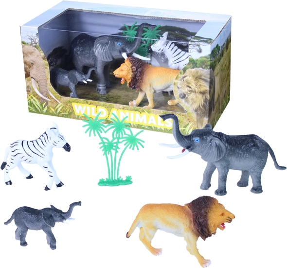 Razširite svojo domačo ZOO s tem izjemnim kompletom divjih živali v škatli. Paket vsebuje slona, slončka, zebro, leva in palmo – idealno za kreativno igro in učenje o naravi.