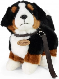 Plišasti pes ima realistične črno-bele in rjave barve, kar ustvarja avtentičen videz bernskega planšarja.