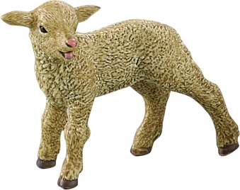 Jagnje je skrbno izdelano z detajlno teksturo, ki spominja na volno, s temno rjavimi kopiti, kar prinaša realizem v vsako zbirko ali učilnico.