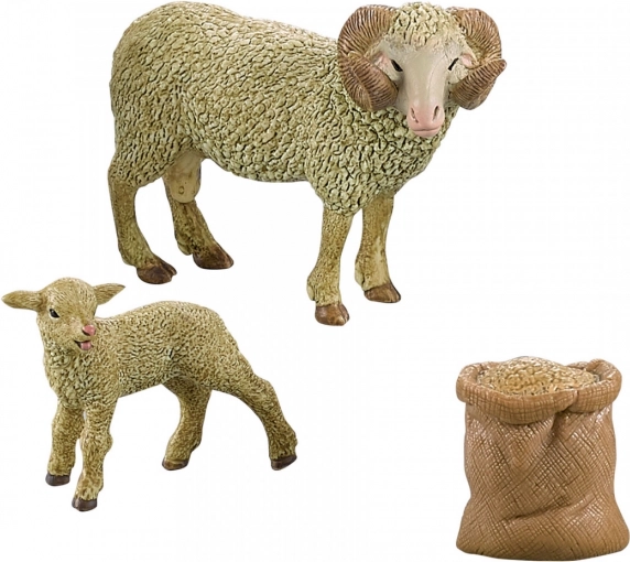 Figurica ovna v tem setu ima realistično izdelano strukturo volne in ukrivljene rogove, idealno za izobraževalne namene ali zbirateljske kolekcije.