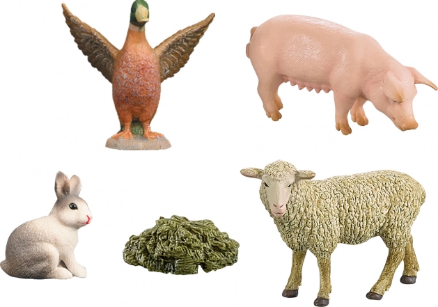 Prašiček, ovčka, račka in zajec z realistično teksturo in barvami so izdelani iz kakovostne trde gume za odporno vsakodnevno igro.