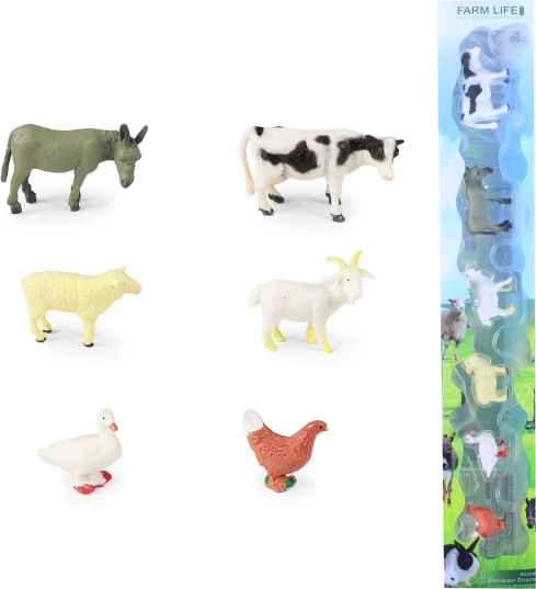Odkrijte zabavni set 6 realističnih domačih živalic za otroke. Figurice so izdelane iz kakovostne trde gume, merijo približno 3–6 cm in so odlične za igro, učenje in zbiranje.
