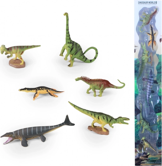 Odkrijte svet prazgodovine s kompletom šestih podrobno izdelanih dinozavrov. Figurice so izdelane iz kakovostne, trde gume in so zaradi kompaktne velikosti pribl. 6–10 cm odlične za igro doma in na poti. Priročna škatlica olajša shranjevanje in prenašanje.