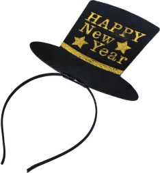 Črn naglavni trak s klobučkom, dopolnjen z zlatim napisom HAPPY New Year, je odličen dodatek za praznovanje ali zabavo ob vstopu v novo leto!