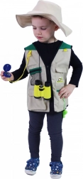 Ta pustni kostum vsakega otroka spremeni v pogumnega raziskovalca. Lahek telovnik z žepi in klobuk brez vrvice se zlahka oblečeta, medtem ko bogati pripomočki spodbujajo domišljijo in razvijajo radovednost pri igri doma in na prostem.