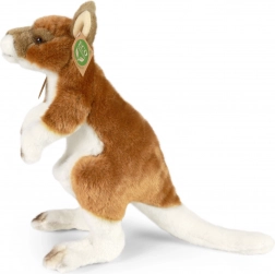 Eco‑friendly polnilo iz recikliranih PET plastenk zagotavlja okoljsko prijaznost, pri tem pa mehkoba in udobje ostajata na vrhunski ravni. Kenguru stoji pokonci, ima značilen rep in ušeska, kar poudari njegovo verodostojno podobnost.