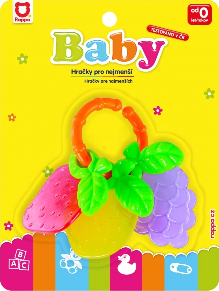 Barvita ropotulja in grizalo v obliki sadja za dojenčke. Lajša izraščanje zobkov, razvija motoriko in vid. Lahko, varno in enostavno za prijemanje.