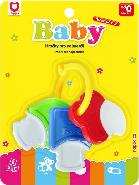 Barvita ropotuljica in grizalo v obliki ključev za dojenčke. Spodbuja motoriko, vid in lajša izraščanje zobkov. Lahek in varen dizajn.