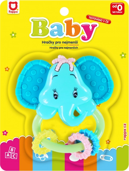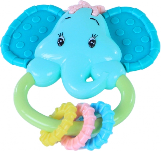 Ta barvita ropotuljica/grizalo v obliki slona je idealna prva igrača za najmlajše. Teksturirana ušesa in obročki prinašajo olajšanje pri rasti zobkov, medtem ko nežno ropotanje zabava in razvija slušne ter tipne veščine.