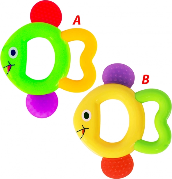 Vesela ropotuljica in grizalo v obliki ribice za najmlajše. Podpira motoriko, vid in olajšanje pri izraščanju zobkov. Lahka in enostavna za oprijem.
