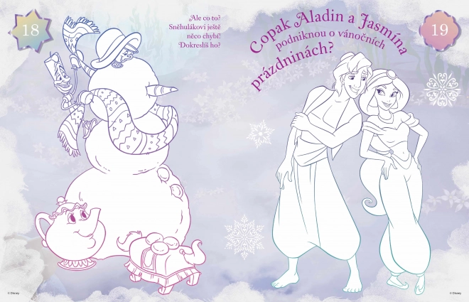 Uživajte v čarobnem adventu s pobarvanko DISNEY Princeske, polno zimske zabave. Vsak dan vas čaka nova aktivnost ali slika za barvanje ter več kot 75 samolepk, od katerih ima del razkošen zlat tisk. Odlično darilo za otroke, ki imajo radi Disneyjeve princeske, ustvarjanje in božično vzdušje.