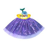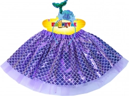 Kostum dopolnjuje trendovski naglavni trak z ribjim motivom in je idealen za plesne nastope, karnevale ali vsakodnevno igro morskih deklic. Dolžina krilca je približno 28 cm, kar zagotavlja udobje in enostavno uporabo.