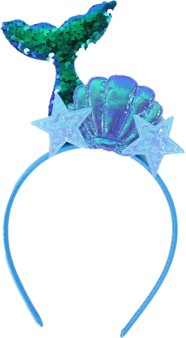 Naglavni trak, okrašen z bleščečim repom morske deklice, školjko in morskimi zvezdami, doda vsakemu outfitu edinstven videz.